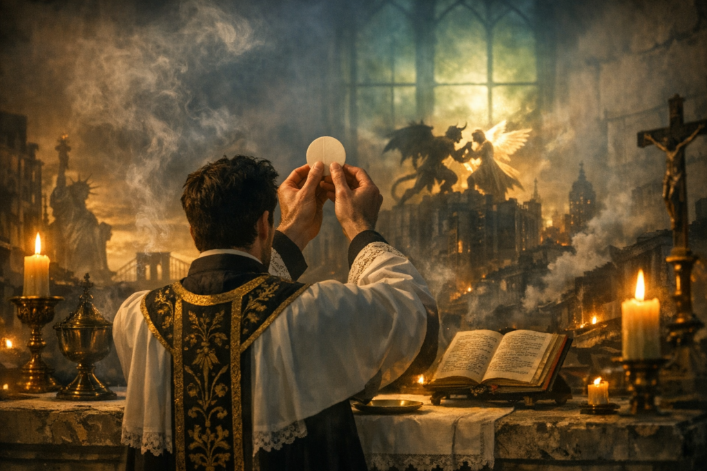 This is not Left Behind. There is no Rapture. The Church does not escape. One priest stays, and the question the series asks is the question the tradition has always asked: What does a faithful man do when the world is ending and the sacraments are the only thing standing between the living and the dead?