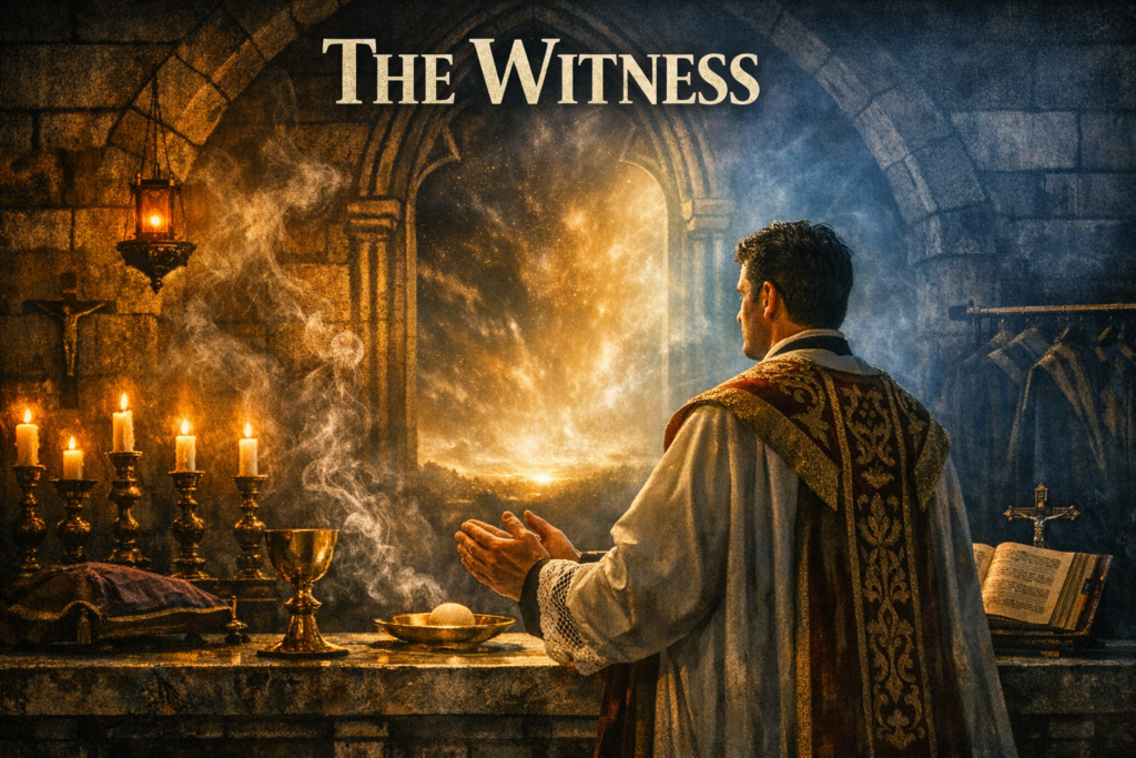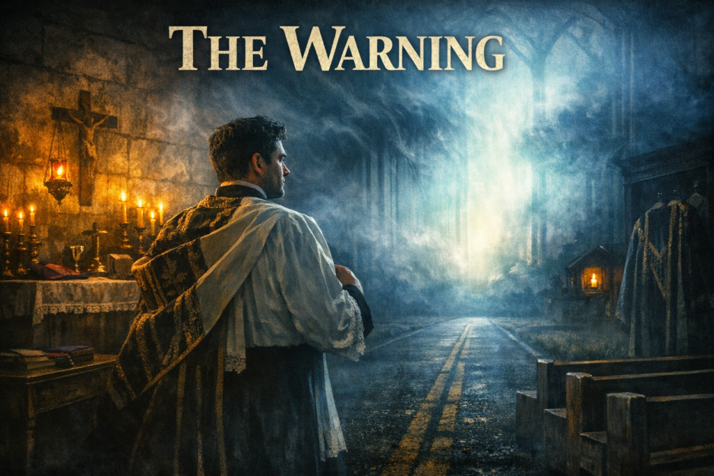 Season opens inside the Illumination of Conscience — Fr. Marco sees every soul he has ever ministered to as God sees them, every pastoral encounter across fifteen books resolved in a single moment. What follows is the last pastoral crisis in human history. He has one thing left to do.